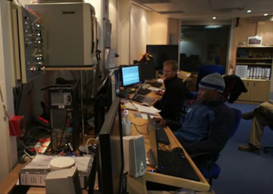 The telescope control room houses all the computers that control the instruments and the telescope. During the day the control room serves as office space for engineers and technicians. At night the control room is dedicated to astronomy operations with a duty astronomer in charge of taking data and an operator who looks after the telescope.
